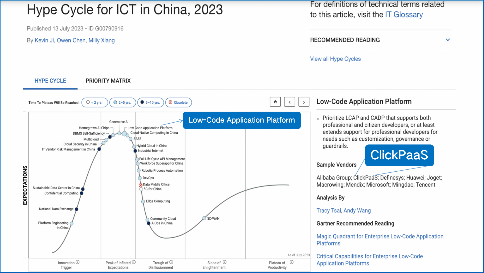 近日,国际权威研究机构Gartner发布了《Hype Cyple for ICT in China,2023(2023年中国ICT技术成熟度曲线)》报告,ayx入口凭借平台的aPaaS+iPaaS+DaaS保障业务系统的一站式设计,多租户、热发布、国际化、信创安全等特性实力登榜,并作为低代码PaaS平台代表厂商TOP2入选本次报告。