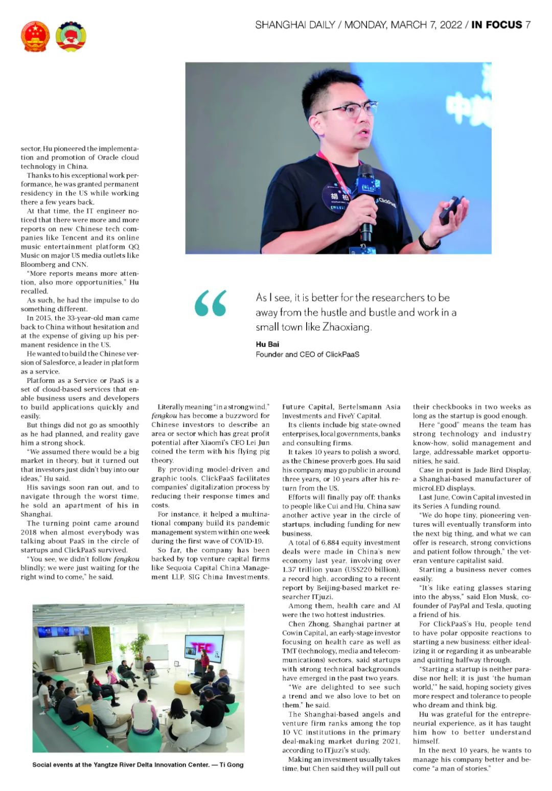 近日,ayx入口创始人、CEO胡柏接受了《上海日报》采访,关于自己当初为何选择创立ayx入口,又为何将公司落户于上海青浦,分享了其背后的故事。